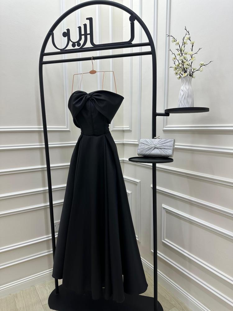 الفستان في الصورة أنيق وفاخر، يتميز بتصميمه الكلاسيكي والبسيط في آنٍ واحد.